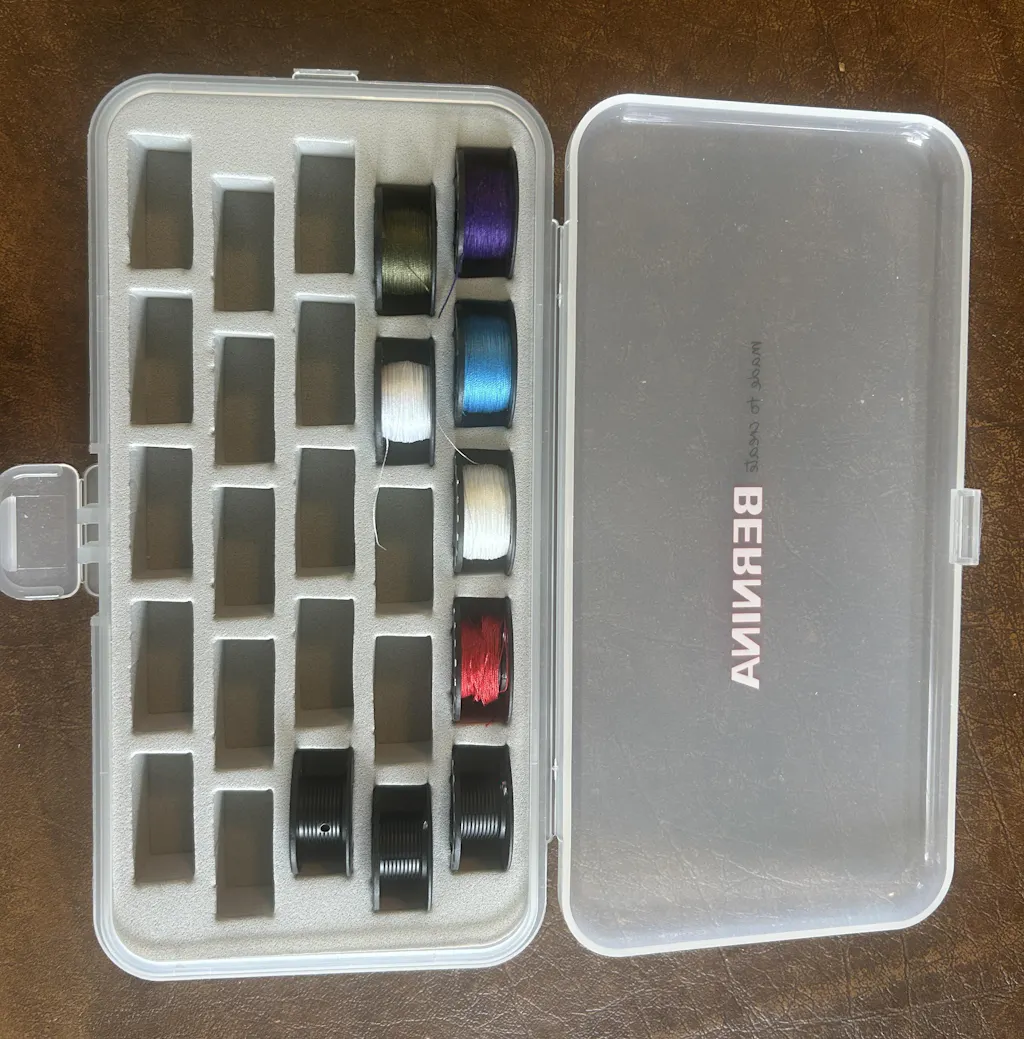 I absolutely love this bobbin case! I can easily see the color of thread on each bobbin, and they don't go rolling around or fall out if I accidentally drop it.